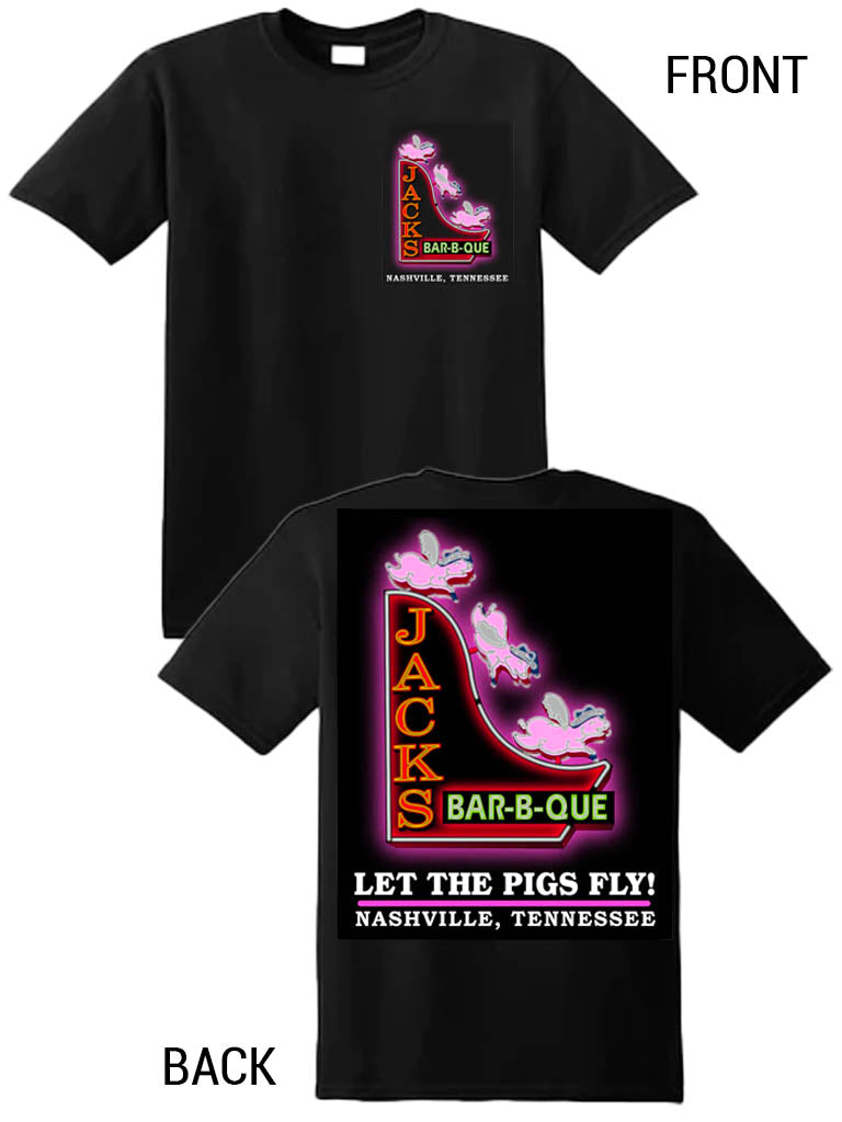 Experience ultimate comfort with our Jack's Bar-B-Que Let The Pigs Fly soft style t-shirts. Made with high-quality materials, these shirts are perfect for all-day wear. Show off your love for delicious BBQ while staying comfortable. Get your hands on one today!